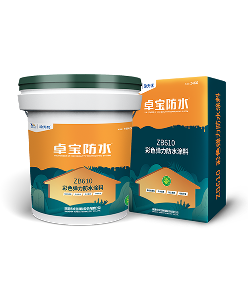 ZB610 彩色弹力防水涂料是一款双组份防水涂料。该产品是由高分子乳液与多种精选添加剂按照科学配比配置而成;施工时聚合物乳液和无机粉料混合后,发生的化学反应能够形成坚韧的防水涂膜,具有良好的粘结性、抗渗性、抗裂性和耐久性,能够持久有效防水。