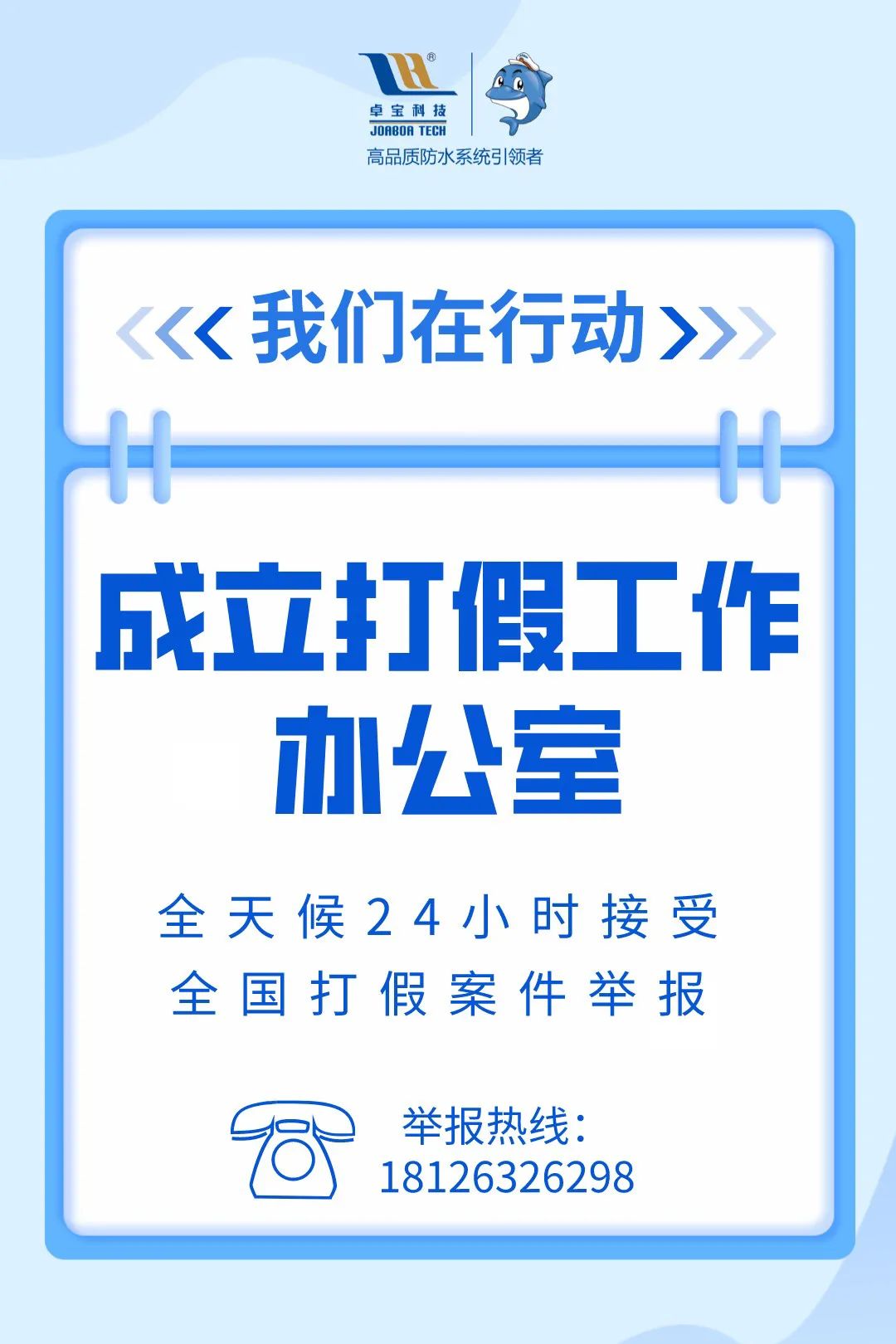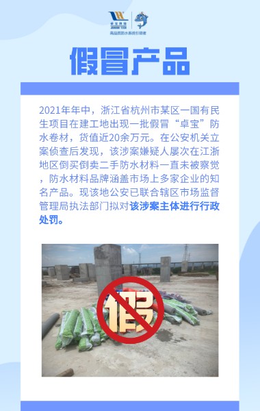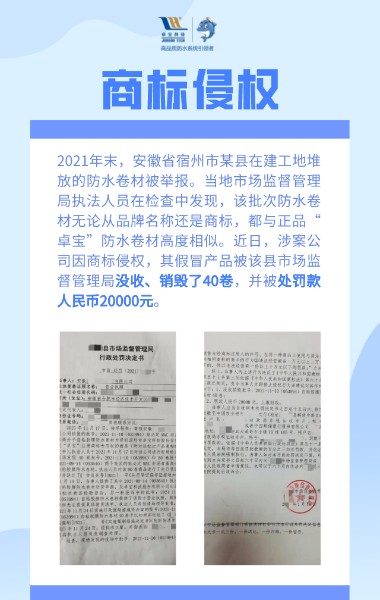 盗用商标以假乱真,偷梁换柱牟取暴利......以上种种行为不仅严重侵犯了卓宝的正当权益和品牌声誉,更是干扰了建筑防水行业的市场秩序。面对出现的不正当市场竞争环境,卓宝科技打击假冒侵权、保护消费者权益正当时。