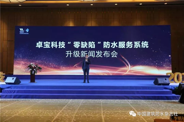 ▲2018年3月4日,卓宝在武汉举行“贴必定+涂必定防水服务系统”升级新闻发布会,宣布由之前的5年保险保障期免费升级至15年质量保证期,并继续享有首期5年“一旦渗漏,双倍赔偿”的保险保障