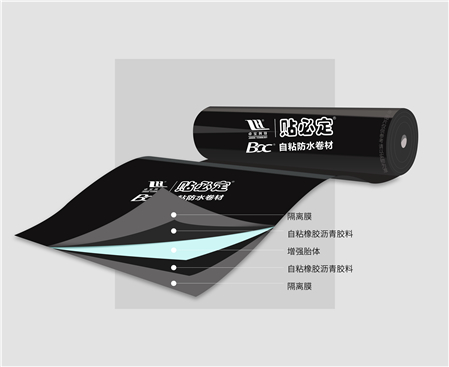 贴必定BAC防水卷材是一种复合双面自粘橡胶沥青防水卷材,具有与水泥(砂)浆粘结和被后浇筑混凝土粘结的性能。该卷材胶料中的高分子聚合物(链段)与水泥水化物(硅酸盐网络)形成(界面)互穿网络(IPN)结构,水泥初凝前可流动、渗透或浸渍,凝固强度日增,粘结力增强。水泥浆的可流动性使卷材与水泥浆之间实现微观满粘,因粘结面积增大而增大卷材与基层的粘结力,从而使BAC防水卷材成为结构混凝土的“皮肤”,即使出现破坏点,也不会出现“窜水”现象。