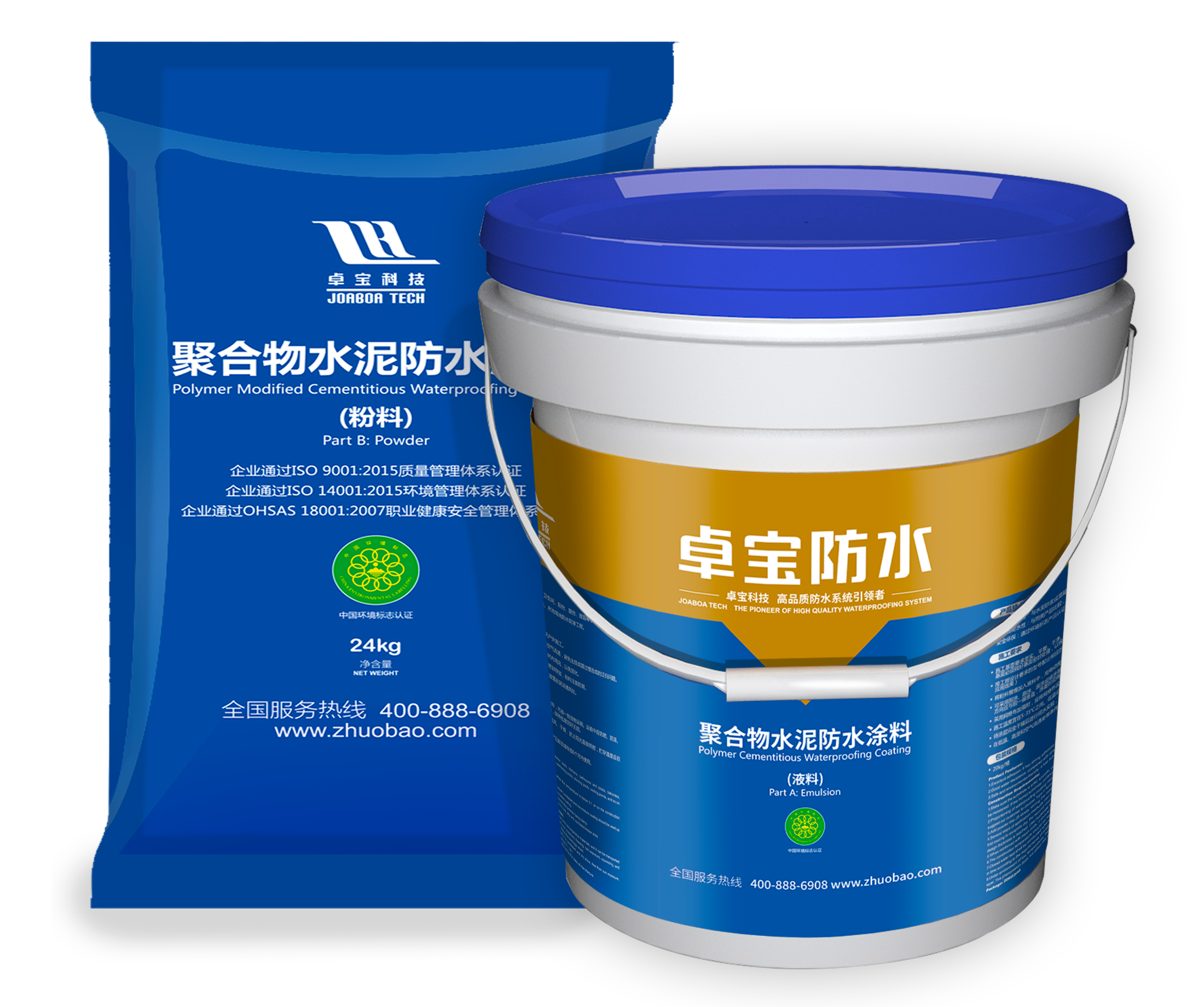卓宝JS聚合物水泥防水涂料是以优质高分子乳液和水泥为主要原料,加入多种无机材料和助剂配置而成的双组分高分子水性防水涂料,该涂料具有优异的耐候性、特强的粘接力、高强度、无毒无味等优点。产品符合JC1066《建筑防水涂料中有害物质限量》,满足环保要求。