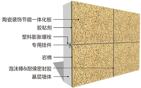 陶瓷装饰节能复合板是以陶瓷板为饰面板,以岩棉或硬泡聚氨酯为保温芯材,以玻纤增强水泥基卷材为内贴层,经热压复合成型而成的外墙装饰节能复合板。